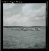 Text på montering i arkivet: Bottengarnen halas av laget från båten upp på bonden Ingels vagn och köras till torkplatsen vid Åkroken.