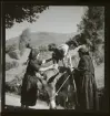 568 F. Stieg Trenter, Torremolinos. Stieg Trenter får sina skor putsade vid en springbrunn på ett torg. Han samtalar med en man som sitter upp på en åsna.