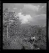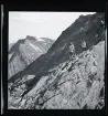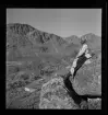 Gösta Lundquist fjällvandrar i snårig terräng.