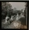 539 Söder. Två unga män sitter på gatan lutande mot ett staket.