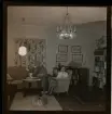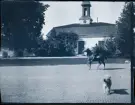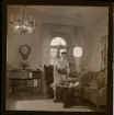 Teckning av Fritz von Dardel. "Det ringer i tamburen Anna!" En kvinna i vitt förkläde ilar mot dörren med en liten hund framför sig.