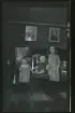 "Nils o Elsa Råstedt." Två unga kvinnor ligger och sover i en säng. Framför sängen sitter en pojke i pyamas som gömmer ansiktet i händerna.