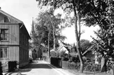 Skara. Östra Kungshusgatan, april 1964. Ingenjör Ernst Lefvanders samling, Skara.
