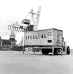 Statens Järnvägar, SJ godsmagasin Uddevalla, lastning på lastbil vid kajen.