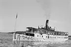 Identiskt fotografi i CG Jacksons samling med Acc nr 1956:1055, Fo22082. Fotodatum 1952-08-15, fartyget lämnar Vaxholm på ingående till Stockholm