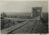 "Inlandsbanan, norra distriktert.Bro över Stora Luleälv (ändvy från väster)" 188 m lång bro över Stora Lule älv. 21/11 1927 öppnades sträckan Porjus - Jokkmokk av SJ.