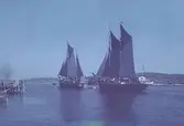 Vid Östersjöns strand i viken Syrsan ligger Helgenäs. Bilden visar en utsikt över orten. Bland annat syns en anläggning med silobyggnad, uppenbarligen anlagd med kajplats.