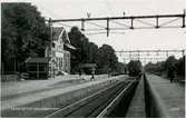 Landvetters station med pasståg och sovvagnshotell för ps. Stationen anlades 1893. En och enhalvvånings stationshus i trä. 1922-23 utökades bangården med ett spår .Öppnad 1894. Vattentorn, 1904 kompetterat med en 'pulsometer'. 1915 tillbyggdes godsmagasinet. Vagnslasttrafiken upphörde fr o m 31 maj 1964. Den 1 juni 19´71 indrogs bemanningen och styckegodshanteringen upphörde. Persontrafiken lades ned fr o m 23 maj 1982. Stationshuset disponeras nu av en klädaffär