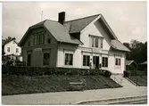 Teckomatorp bestående av järnvägsstationen, järnvägshotellet, telefonstationen och folkskolan.