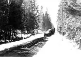 TVÅ ARBETSKLÄDDA MÄN SOM BÄR PÅ VAR SIN UNIKABOX, I SKOGEN.