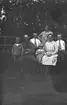 En man klädd i kostym står bredvid en dörr och en krukväxt,troligen en nerium
