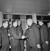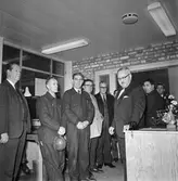 "110 värmeledningsskötare lära sig elda effektivt" - rektor Anderberg med ingenjörerna Helge Öhrvall och Erik Gabrielsson, Tekniska skolan, Uppsala november 1942