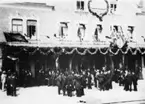 Enligt fotografens anteckningar: "Kungen den Gustaf den V. Tagit vid Munkedals Bron 1918 Munkedals Bruk".