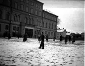 Skara högre allmänna läroverk i bakgrunden. Ev ett kungligt besök i staden, med tanke på bilen?