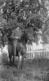 Ryttartävling i SKLS (Skaraborgs Läns Slakteriförening) uppvisningshall, Skara. 1/4 1951. Ryttare Gun Bogren.