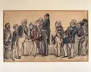 Maskeradbal 14 april 1856. Oscar Björnsjerna och C F Piper bland övriga gäster. Akvarell av Fritz von Dardel.