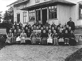 Stenbackens skola 1921 - lärarinna okänd. I bakgrunden syns Öresjö