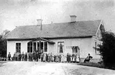 Nockeruds skola. "Beträffande skolområdet i Nockerud beslöts 1894 att indraga en befintlig skola i Pankan ........... lärartjänsten, som även omfattade Grimstorps skola .......... Från och med 1898 inrättades en, fast mindre, folkskola i Nockerud. Lämplig skollokal erhölls genom förvärv av en fastighet från hem.äg. J. Sjögren i Nockerud för 2.150 kr. Så tillkom Nockeruds skola och småskollärare Mathilda Storm anställdes nämnda år som lärare med ett 30-tal barn. Hon kvarstod i tjänst till den 1 juli 1929, då skolformen ändrades till B3 med en folkskollärare för såväl folk- som småskolestadiet. Folke Sundqvist var den siste läraren vid skolan, som indrogs 1936. Då hade en väg byggts mellan Nockerud och Gårdsjö, varför barnen kunde hänvisas till skolan i Gårdsjö." (Eric Wallgren: Skolväsendet i Hova socken, Hova-Älgaråsboken, 1973). Revs 1964. Mathilda Storm: född 1869 7/3, syster till Charlotta Maria Storm, Karl Eks mor. Fadern till Mathilda och Charlotta var gevaldiger (= poliskonstapel, fångförare//MA) och blev ihjälslagen. Flickorna växte upp i Sjötorp 1:1, Fredsberg. Karl Ek besökte vid flera tillfällen "moster Tilda" i Nockerud. En gång (vid sekelskiftet nån gång) fick han då se en man iklädd säckkläder vara tjudrad nära ett hus. Denne kröp på alla fyra och gav ifrån sig hemska läten. Reprofotograf: Gunnar Berggren.