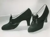"7. Svart chevreuaux". Pumps med plös, rosett, klack.