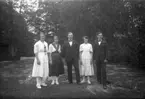 Karl Johansson, Edla Adolphsson, Anna Johansson och Erik Johansson. Syskonen samlade på Botvidsgatan 55, 1929.