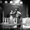 Wadköping reportage 5 juni 1965. Två skådespelare i aktion. Klädda i 1700-talskläder. Kvinnan på bilden är Birgitta Götestam.