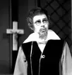 Premiär Julie, 28 februari 1966 Finklädd dam i teaterns foajé. Hon är klödd i klänning med broderad kofta, pärlhalsband samt örhängen. Andra personer skymtar i bakgrunden.