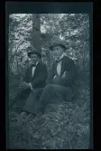 "Äs." Två unga män porträtterade sittandes ute i naturen.