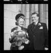 "1680 Bröllop i luften med Abas DC-4 ""Sunnan"" till Paris " Ett brudpar stiger på ett flygplan.
