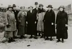 Lärarkollegiet på Centralskolan. Ingeborg Käck-Bäfverö Elsa Noring, Adele Sonderburg ?, ? Nilsson, Hilding Svensson, Adele Nilsson, Estrid Hilgerth, Vega Karlsson, Edla Wahlqvist, Greta (Margareta) ? Rånge, Maria Josefsson, Eva Brunskog, Emma Larsson. Elsa Noring dotter till Carl Noring (tågmästare), handarbetslärarinna på Centralskolan i Falköping. Född 1896. Bilden tagen omkring 1920.