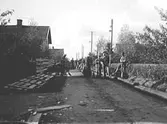 Allmänna Bolagets personal lägger ner 36-pipiga cementblock för telefonkablar i Gustaf Adolfs torg.