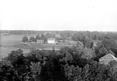 telefonledning, åkermark, bygata, träd, bybebyggelse, kyrka