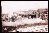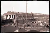 "Vagnhallen Gårda. Exteriör från söder under hallens uppförande."