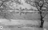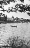 Från Hårsfjärdens marinbas, Märsgarn till v, Vitsgarn till h. Om bilden likt de flesta i Bergers samling tagits vid slutet av 1920-talet bör fartyget till h vara torpedkryssaren PSILANDER, som då var skolfartyg. I mitten oidentifierat segelfartyg med mindre fartyg framför. Till v vad som förefaller vara en fiskebåt.
