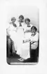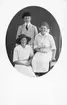 Interiör med en ung man som står vid ett litet bord och två kvinnor som står respektive sitter vid ett stort fönster. Det hänger något i fönstret, kanske fotografier. Det är möjligen en fotoateljé hos Anna-Lisa Rythén eller hos Mimmi Allard.