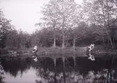 Hulda Jansson vallar kor i skogskanten. 1930-talet. Reprofotograf: Gunnar Berggren.
