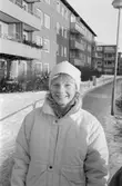 "Eva Lisa Birath, 5 C Brattåsskolan tyckte att det var både tråkigt och roligt på samma gång att ta vägen till skolan efter ledigheten. Käraste julklappen var nya möbler till sitt rum, tyckte hon." Kållered, år 1985. För mer information om bilden se under tilläggsinformation.