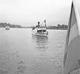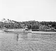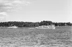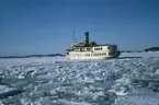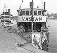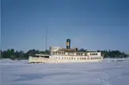 Foto visande passagerarmotorfartyget "VÄSTAN" av Vaxholm på slipen Mälarvarvet, Stockholm, 1973-03-06.