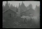 Män i äldre uniformer, till häst. Skansen, Stockholm.