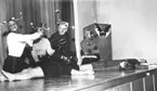 Kommunala flickskolan. Längst t v (i herrkostym) Ingrid Fors och i officersuniform närst längst till höger Astrid Ahrne.