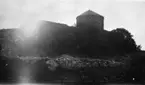 Kalmar slott, exteriör från Kallbadhuset. Från Lycksalighetens ö. Ur Winellska samlingen.