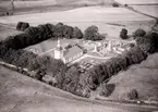 Hovby sn. Östby ödekyrkogård med kyrkoruinen. Foto: Linds Fototjänst, Lidköping 1957.