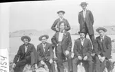 Text till bilden: "Uddevalla. Grupp, elva utklädda personer".