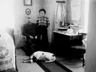 Ateljé. Pojke med hundvalp. Fotograf: Axel Lundbäck. Gullspångssamlingen. Bilder från Gullspång med omnejd.