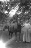 Svea Lund och Hulda Juliusson, Hedekas, framför en bil