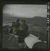 Tre män drar en eka över vattnet vid fjällgården i Kummavuopio, sommaren 1943.