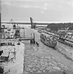 Vägbro över Hammerdalssundet. Tryckpress vid bron. Lager på släde för utdragning av bågspann.