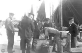 Fiske, lossning av fångst i Falkenbergs hamn.