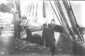 Bildtext bild 1: Ombord på "Karin" för avfärd från Anholt. ( FG 85 ) Bildtext bild 2: Ombord på "Karin" före hemfärden. (FG 85) Bilden tagen 19290621