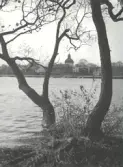 Falkenberg. Hamnen från Hamngatan. Båten som passerar med passagerare är fiskebåten Vasa som sommartid gick mellan Hallanäset och Skrea Strand.