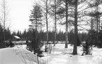 Oskar Andersson med hustru Anna och dottern Ester vid rågärdesgården mellan nummer 6 och nummer 9. Familjen bodden i gården i bakgrunden som tillhörde Åsmundshyttan nummer 9.